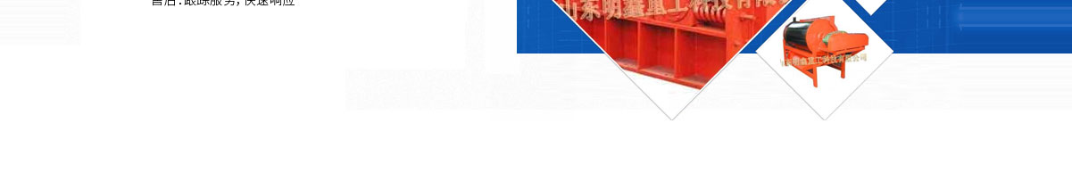 山東明鑫重工科技有限公司為是集科研開發,設計制造、銷售、安裝、調試為一體的技術制造企業。公司位于美麗的****風箏都-濰坊市(國家AAAA級森林公園-沂山景區駐地)臨朐東城工業園。本公司產品種類有:破碎機設備,(電磁、永磁)除鐵器設備,磁選機設備,篩分設備,輸送設備,給料機設備,水泥自動化控制設備、除塵設備,儀器儀表等產品。其產品有五十多個系列,四百多種規格,并可根據客戶需求設計生產相應的產品。其產品廣泛應用于冶金、電力、煤炭、礦山、造紙、食品、化工建材、耐火材料、磚瓦、水泥、玻璃等行業,產品暢銷國內三十多個省市、自治區。